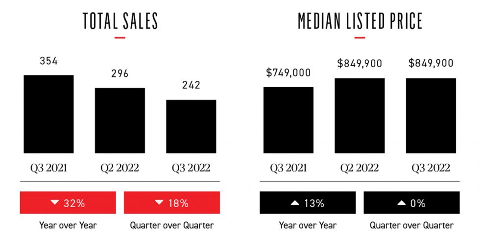 The Hoboken real estate market saw a 16% decrease in home sales during Q3 compared with Q2, and a 30% decrease in home sales compared with Q3 of last year, while homes spent an average of 26 days on the market, up 13% from 23 days in Q2 of this year. 257 Hoboken homes were listed on the market during Q3 and the median listing price was $849,900. The median sales price was up 4% and the average sales price was up 22% compared with the previous quarter and up 18% compared to the same quarter last year.
